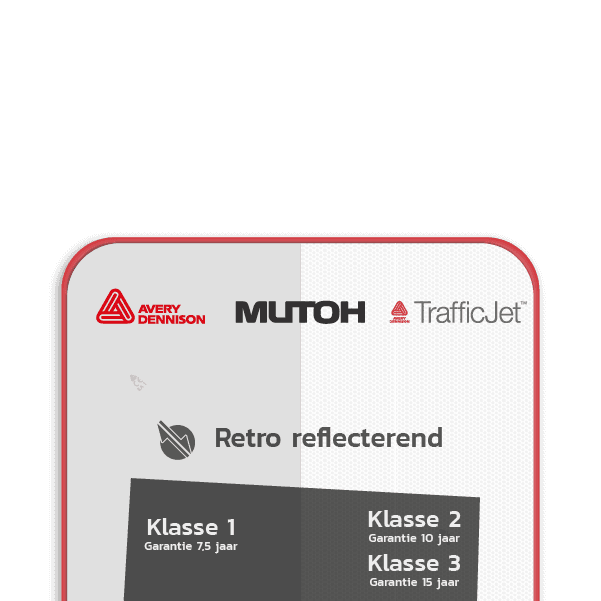 De voorzijde van de borden is volledig reflecterend klasse 1 of 3 Incl. anti-graffiti laminaat.