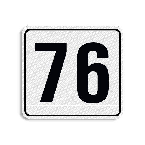 Huisnummerbord Alupanel 119x109mm met print van tekst / pictogrammen in reflectieklasse 3 (incl. anti-graffiti laminaat).