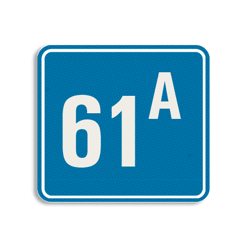 Huisnummerbord Alupanel 119x109mm met print van tekst / pictogrammen in reflectieklasse 3 (incl. anti-graffiti laminaat).
