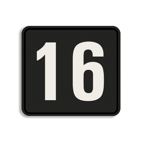 Huisnummerbord Alupanel 119x109mm met print van tekst / pictogrammen in reflectieklasse 3 (incl. anti-graffiti laminaat).